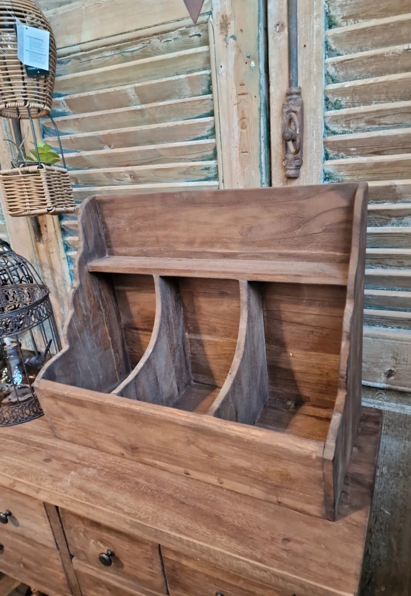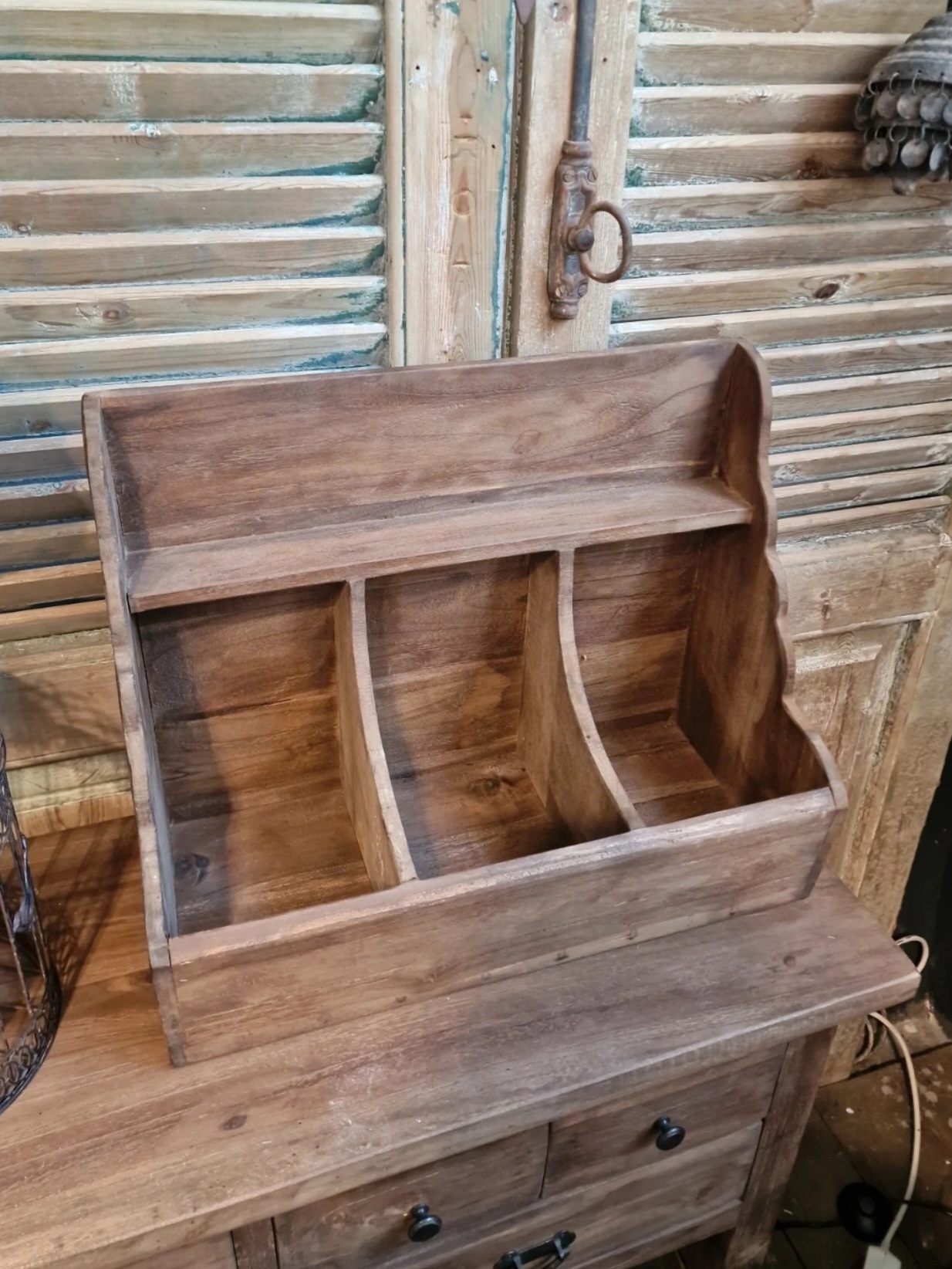 Robuuste teakhouten landelijke gruttersbak – 3 vakken – 50 x 40 x 24 cm