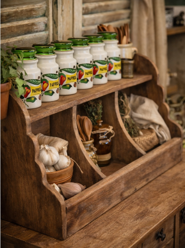 Een prachtige combinatie van praktische opbergruimte en landelijke charme voor iedere keuken.