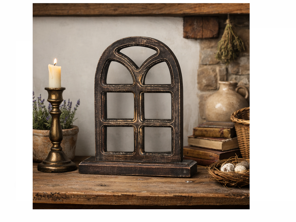 Dit decoratieve stalraam is een sfeervolle toevoeging aan een landelijk interieur. Het ontwerp geeft een authentieke en warme uitstraling en past perfect bij een cottage- of boerderijstijl. Plaats het raam bijvoorbeeld op een vensterbank, dressoir of gebruik het als decoratie aan de muur.