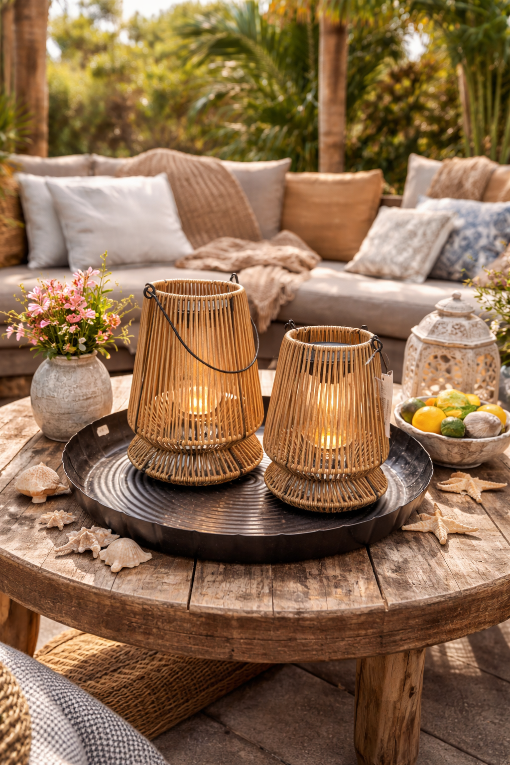Breng direct sfeer in je tuin of overkapping met de Solar Ibiza tafellamp. Deze decoratieve solar buitenlamp combineert natuurlijke materialen zoals ratan en metaal met een warme zandkleur, waardoor hij perfect past bij een Ibiza-, boho- of natuurlijke tuinstijl. Dankzij het elegante ontwerp met speelse franjes creëert de lamp een gezellige en ontspannen ambiance.